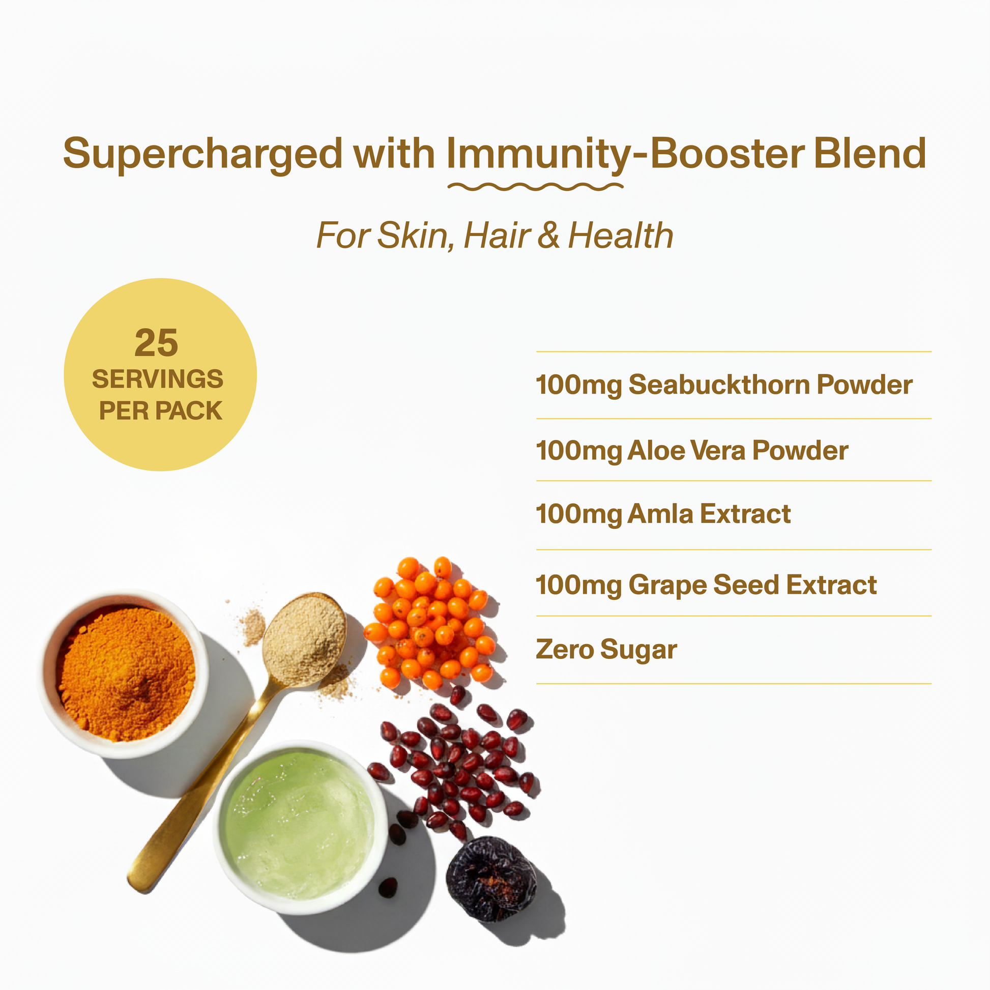 It’s incredibly simple — one scoop, 100 ml of cold water. Scoop, mix, and glow daily. One serving (or sachet) a day is all you need to sip on your wellness routine, backed by science. It tastes like refreshing juice, making your daily collagen a delicious part of your day. Remember, consistency counts — take it every day for best results.